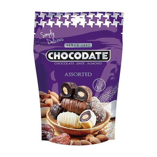 View full detailsThe Chocodate Chocolate Covered Dates (Assorted) are premium bite-sized treats made from whole dates filled with almonds and coated in chocolate. C...