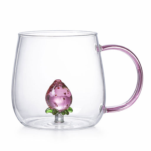 A clear borosilicate glass cup featuring a charming 3D Strawberry motif inset within the wall of the glass. At approximately 7 cm (length) × 9 cm (...