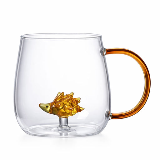 Animal Shape Glass Cup - Cute 3D Handle Mug (Hedgehog)