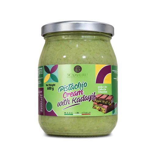 Discover the rich, authentic taste of Dubai Chocolate Spreadable Pistachio Cream With Kadayif (600g) a premium Italian-style pantry spread perfect ...