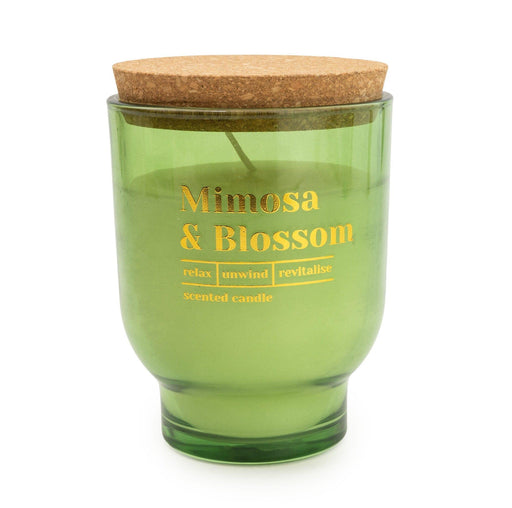 Indulge in the invigorating scent of their Large Olive Round Footed Glass Candle, infused with the vibrant fragrance of mimosa and a harmonious ble...