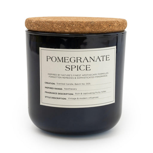 Introduce sophistication to your decor with this Medium Glass Jar featuring a Cork Lid, infused with the captivating fragrance of Pomegranate Spice...