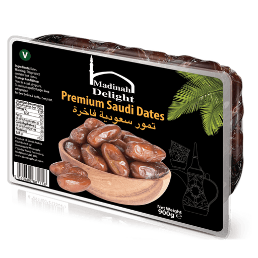 The Madinah Delight Premium Saudi Dates (900g) are a range of natural, fresh, high-quality grade dates from Madinah. These dates are known for thei...