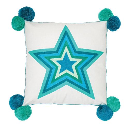 Bombay Duck Teal Star Pom Pom Cushion