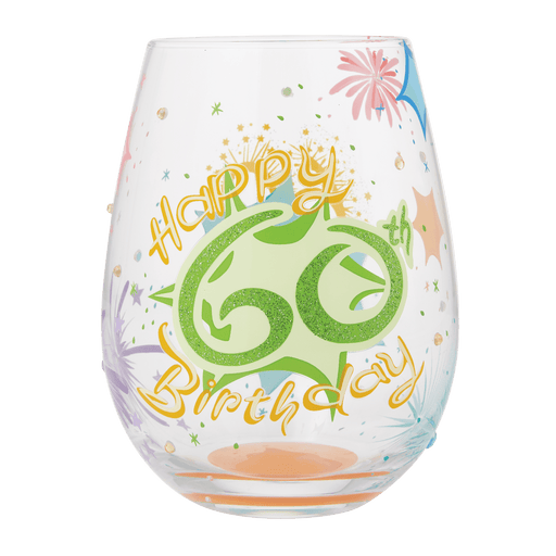 View full detailsCelebrate a life well lived with Lolita Happy 60th Birthday Stemless Wine Glass. Hand-painted with bold colors and sparkling details, each glass co...