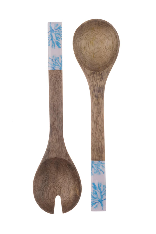 Part of the fabulous sustainable mango wood range from Shoeless Joe. These coastal salad servers are made from mango wood with a fused enamelled de...