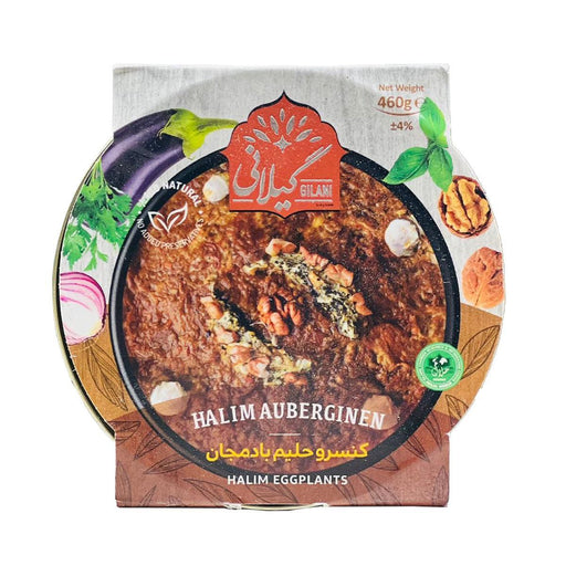 View full detailsExperience the exquisite flavours of the Gilani Halim bademjan Tin (Persian Eggplant and Lentil Dish). This premium tin is made with the finest ing...