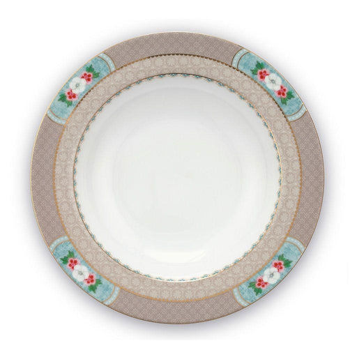 View full detailsThis khaki deep plate is made of high-quality porcelain and decorated with exotic flowers. Each edge has a different design and golden details. Com...