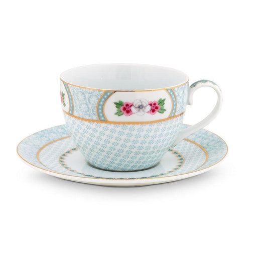 View full detailsThis cappuccino cup and saucer set is decorated with a blue design, exotic flowers and golden details. Combines beautifully with the other coffee s...