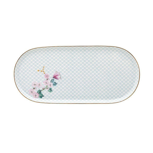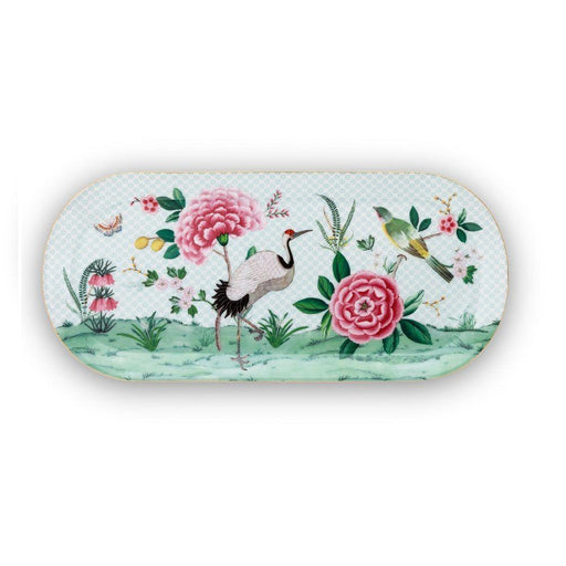 View full detailsThis rectangular cake platter is decorated with exotic flowers, tropical birds, a butterfly and golden details.The background has an elegant design...