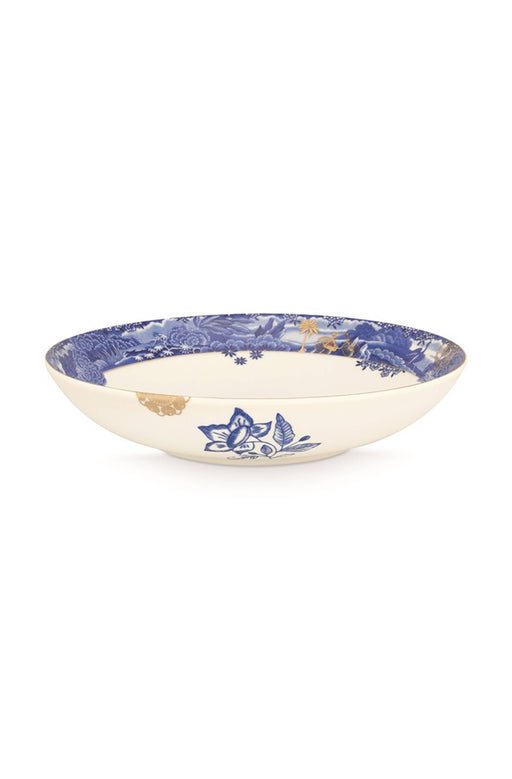 View full detailsThis blue bowl is decorated with exotic flowers. Each edge has a different print and golden details and elements from the design adorn the inside o...