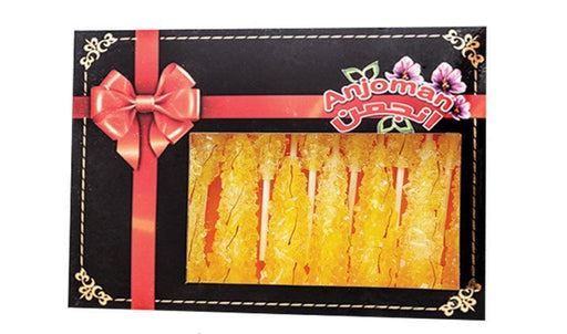 Indulge in the luxurious Anjoman Saffron Rock Candy With Stick. Made with the finest ingredients, sugar, water and infused with premium saffron, th...