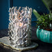 Add some ambiance to your living space with delicate candlelight from our new Coral Hurricane Lantern. For that beach-comber effect, strands of coral climb the sides of the lantern casting interesting shadows around the room and giving the perfect finishing touch to any nautical themed decor. Also available in a smaller size.