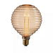 Its amber tinted ribbed glass and anti-glare light source create a diffused effect, enhanced by the etched acrylic inner. This unique lamp exudes charm and adds character to any room. Perfect as a gift when paired with a table base.