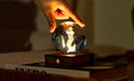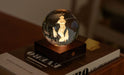 The Gingko Amber Crystal Light is a beautifully designed ambient light that brings artistic charm and soft mood lighting into your home. This award-winning decorative lamp features a 3D laser-engraved crystal sphere that sits atop a solid FSC-certified walnut wood base, creating a polished and elegant piece that doubles as both a light source and interior accent. The crystal ball displays intricate motifs — including designs such as Solar System, Galaxy, Dandelion, World Globe and more — each adding unique visual interest to bedrooms, living rooms, study desks or bedside tables.