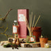 To use place the rattan reeds into the bottle, immersing them in the liquid and the perfume will be drawn up through the reeds. To increase the intensity of the fragrance simply remove the rattan reeds, flip them over and place back in the bottle.