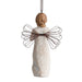 This is a classic Willow Tree ornament, a smaller-sized version of one of Susan Lordi's most popular pieces, redesigned as a hanging ornament. It comes ready to hang with a stretchy cord. It makes a thoughtful commemorative gift for special occasions or everyday appreciation.